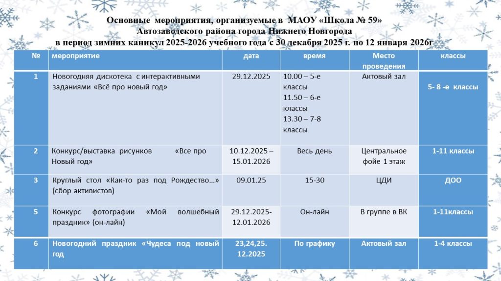 План мероприятий на зимние каникулы 2023-2024 учебного года